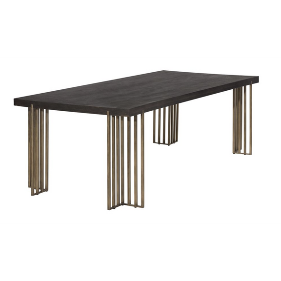 This dining table from our MIXT collection will bring warmth and style to various living and lounge spaces. The oak wood veneer top is complemented with architectural antique brass steel legs for added appeal. Suitable for residential and contract environments. Seats up to eight.