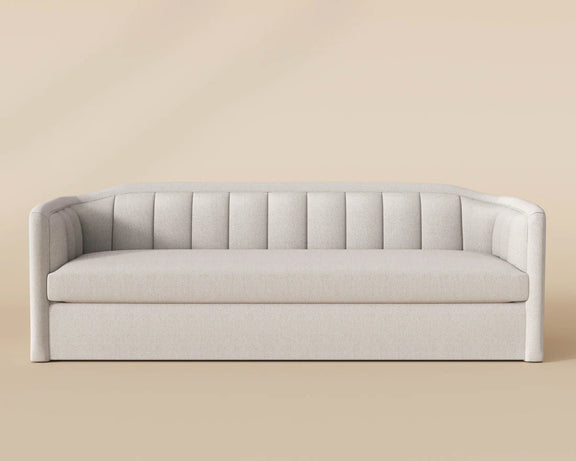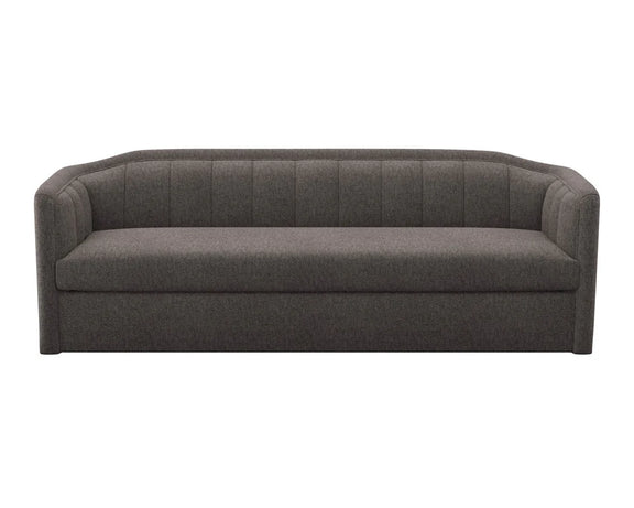 Introduce lavish comfort to any space with this contemporary sofa. Stocked in alaska hedgehog brown performance fabric. Features vertical tufting on the interior. Performance fabric is moisture repellent, durable and easy to clean
