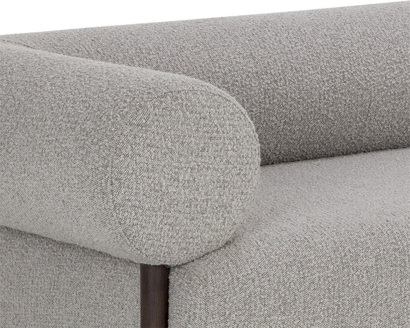 With its voluminous contours, the Bromley Sofa is a captivating presence in any living space. Upholstered in our altro cppuccino fabric, this sofa features wide arm and back rests for additional comfort. Brown oak wood base and detailing give a rustic element to the overall design. As wood is an organic, porous material, these pieces will contain natural variation of texture and may also exhibit fine indentations and cracks. Wood pieces will also display a disparity of colour and grain, and visible knots and burls that add to the character of each piece.