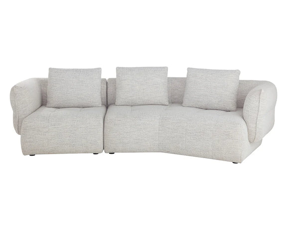 Punctuated by unique angles and an asymmetrical shape, the Emmeline Sofa is sure to bring a fashion-forward statement. Designed with textured boucle performance fabric, this two piece sofa features expertly tailored knife-edge pillow arm cushions for sumptuous comfort.