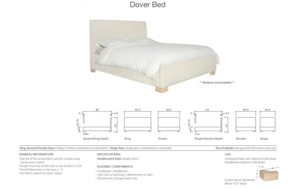 - Assembly Components: Footboard, headboard, siderails w/ hardware, metal frame w/ slats, legs