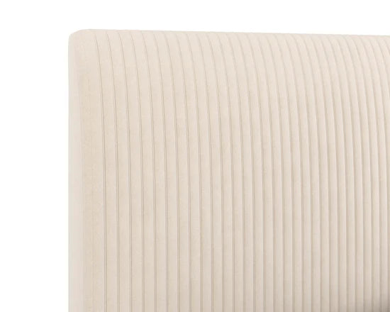 Add a touch of modern style to any bedroom space with this comfortable bed. Upholstered in casablanca cloud performance fabric, and features fine vertical tufting on the headboard. Completed with stainless steel gold legs. No box spring is required and slats are included. Performance fabric is moisture repellent, durable and easy to clean