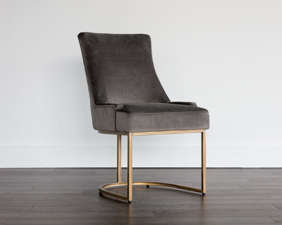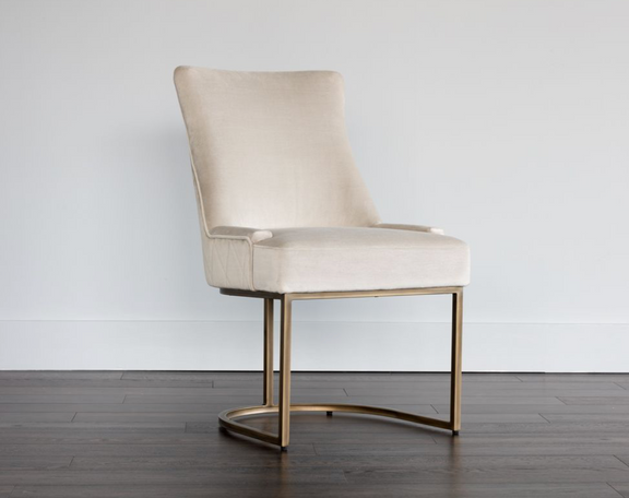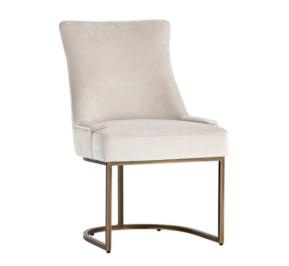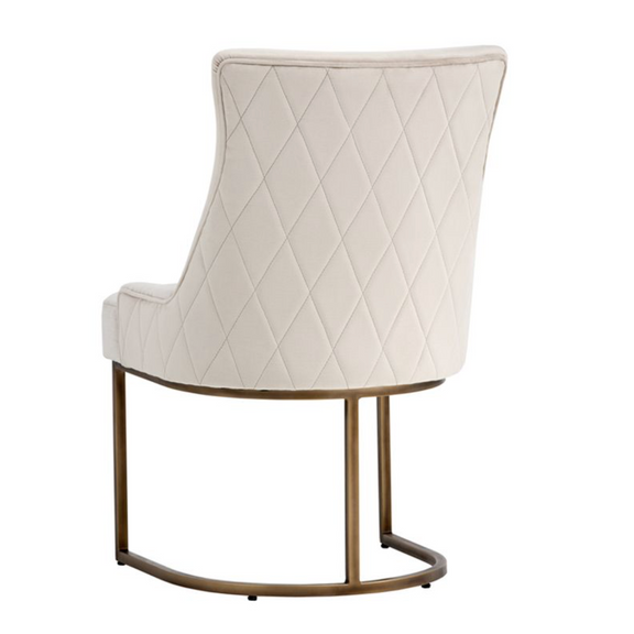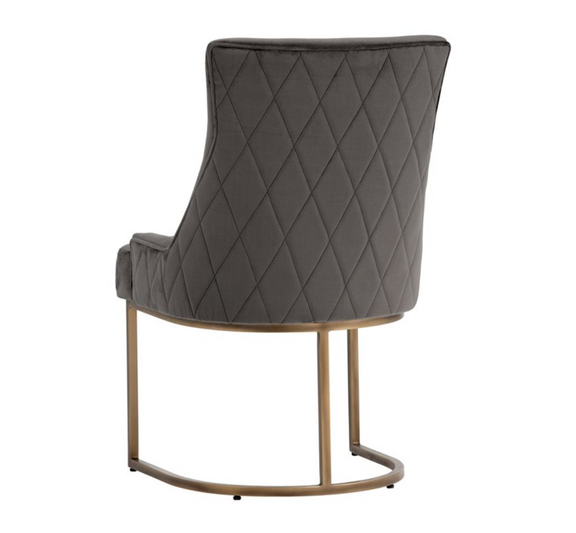 This dining chair from our Irongate collection offers transitional elegance. Features a beautifully sculpted seat in our soft pimlico prosecco and pebble fabric, with a rustic bronze cantilever frame. A diamond stitched pattern on the exterior seatback adds a touch of beauty to complete the look.