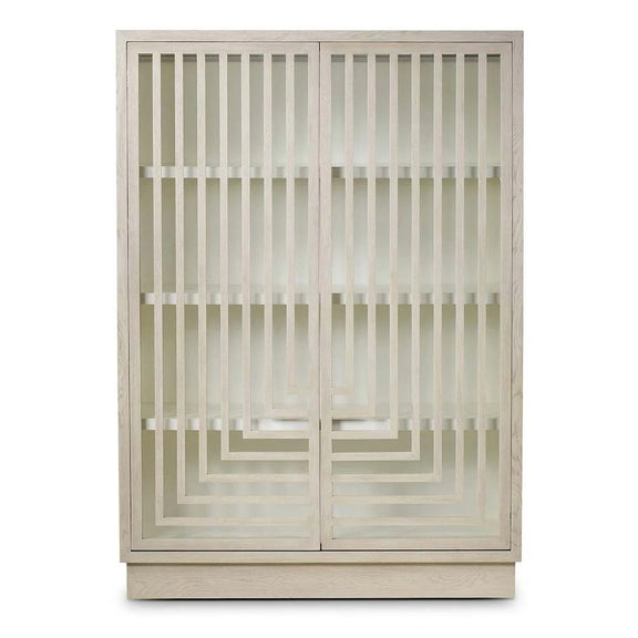 The intricate and inspired design of the Hobbs cabinet, which also has interior lighting, allows objects inside to shine, while the delicate facade creates a lightness and floatiness that is unusual for such a large piece.