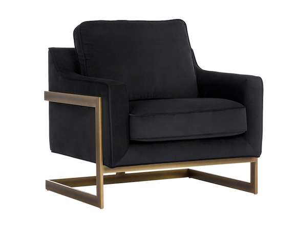 Conversations will flow while seated on this handsome lounge chair. Designed with deep seating, a cushioned back and piping detail for a comfortable addition to transitional spaces. Stocked in our abbington black fabric with an exposed rustic bronze steel frame.