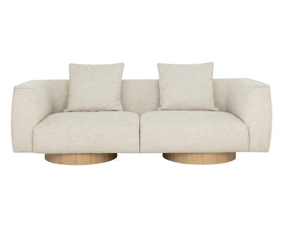 The Mattis Sofa creates a handsome melody between sleek modern design and smooth contemporary finishes. Masterfully upholstered in santa cruz oatmeal fabric and with two light oak veneer rounded bases, this sofa is a stunning iteration of balanced shapes and timeless style
