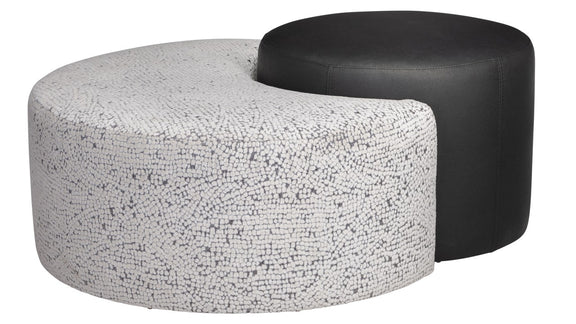The Pacman ottoman offers a playful yet sophisticated design with two interlocking pieces that can be used together or separately. Featuring a moon-shaped ottoman and a circular counterpart, this versatile piece creates a striking visual effect while maximizing functionality. The moon-shaped ottoman can be positioned to curve around the circle, forming a cohesive, dynamic shape, or each piece can stand alone for different uses. Upholstered in soft, durable fabric or leather, the Pacman ottoman adds a modern touch to any living room or lounge area, blending creative design with practical comfort for a unique statement piece.