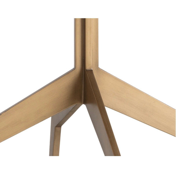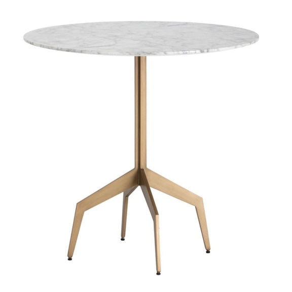 A contemporary bistro table featuring a marble-look top and brushed antique brass steel spider legs. Perfect for smaller kitchen and dining spaces.