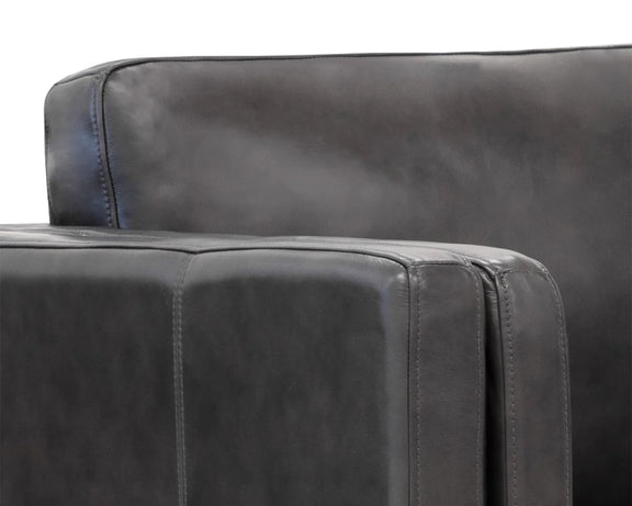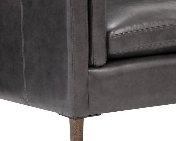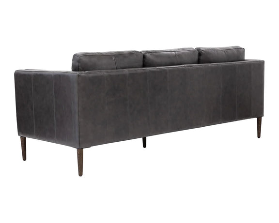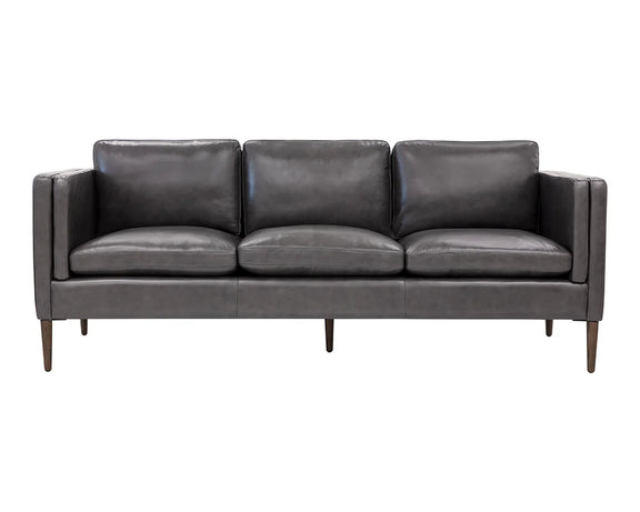 Create a stylish and comfortable space with this modern sofa. Designed with a sleek silhouette in cortina black leather and dark brown solid wood legs.